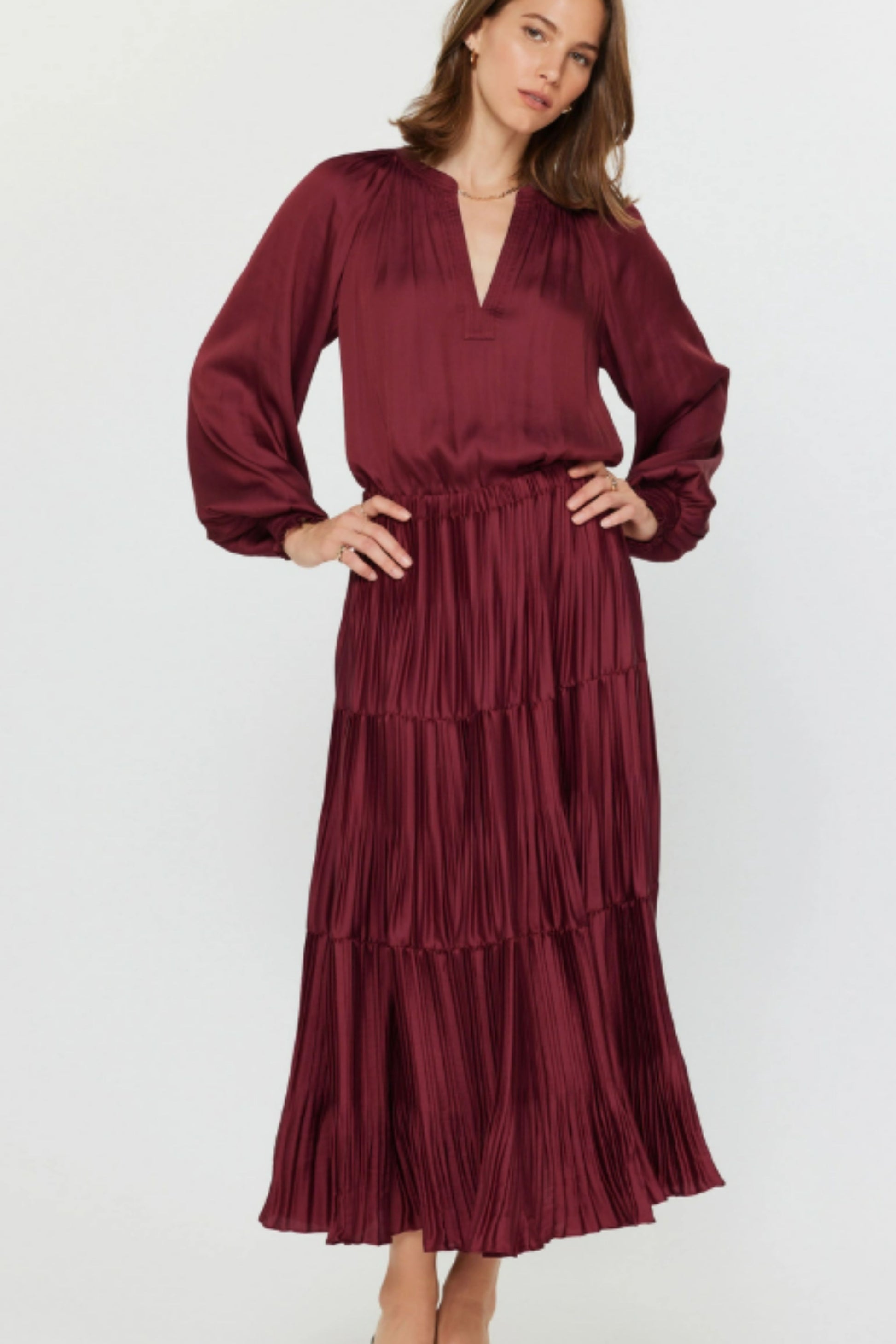 Current Air Burgundy Pleated Skirt