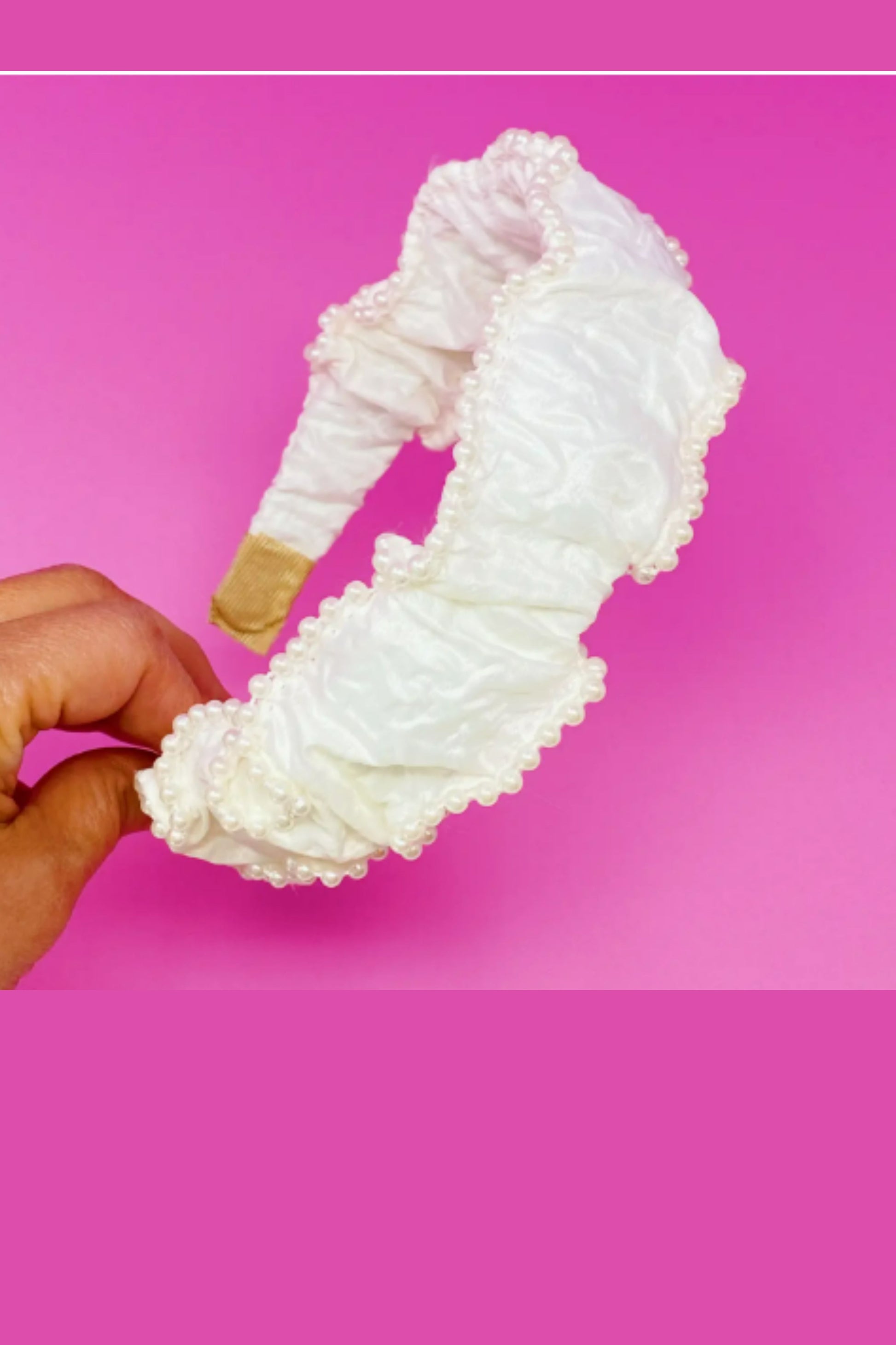 This headband is delicately scrunched and embellished with small pearl beads all around, absolutely gorgeous! Textured silky fabric, soft edges for comfy wear, just great details all around! Great for everyday fun, wedding, or any occasions.