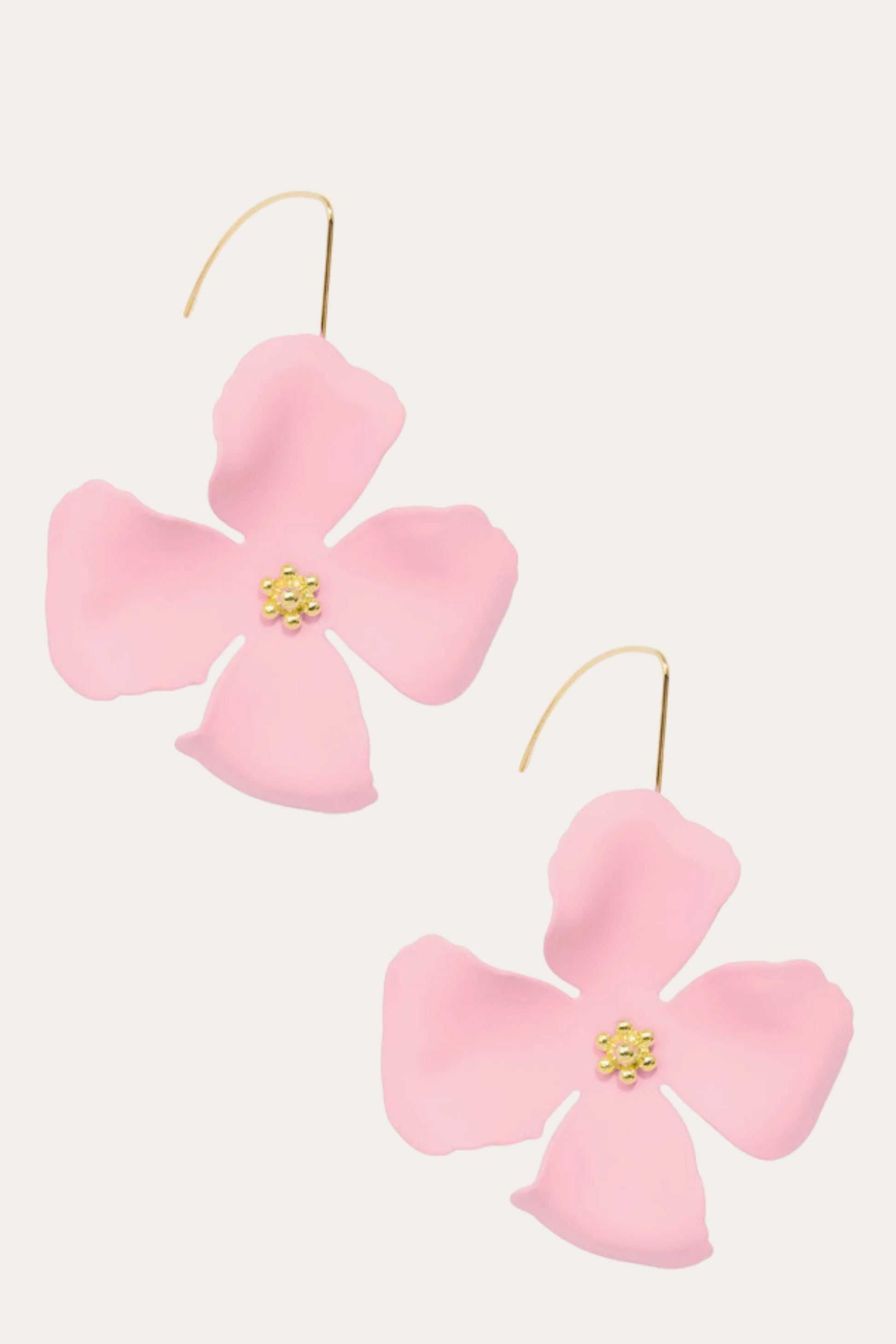 ZENZII Pink Matte Flower Threader Drop Earrings